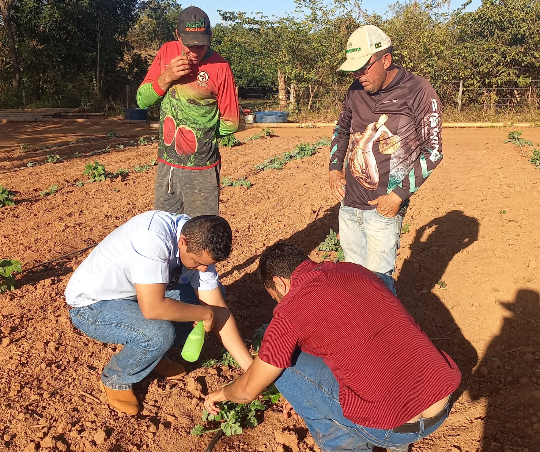 Em Uruana (GO), o foco foi a melancia, onde identificamos carência na polinização — fator essencial para o bom pegamento e desenvolvimento dos frutos.